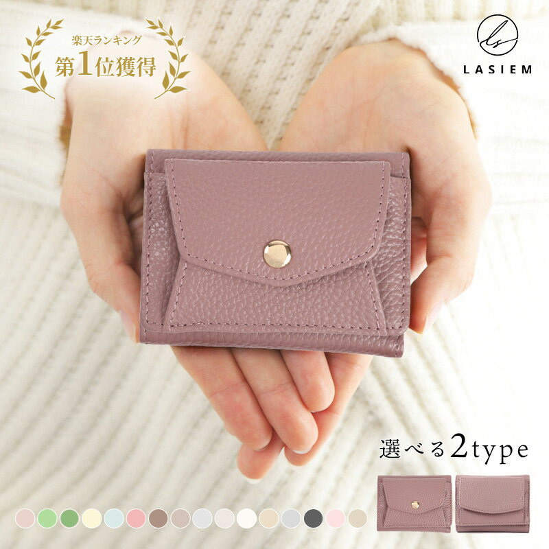 「LASIEMの3つ折りミニ財布」は本革仕様で質感・高級感共に高くじゃばら式で大きく開いてカードも出し入れしやすく最大12枚収納可能でおすすめです。