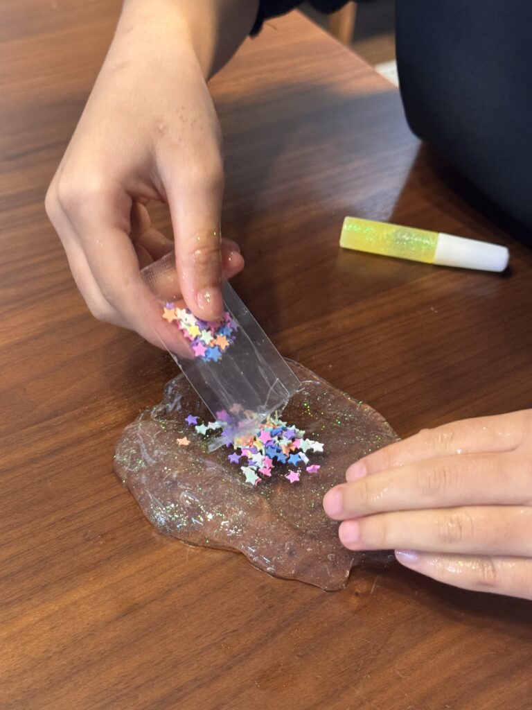 スライムは完成形でパーツを混ぜてオリジナルのきらきらスライムが作れます。